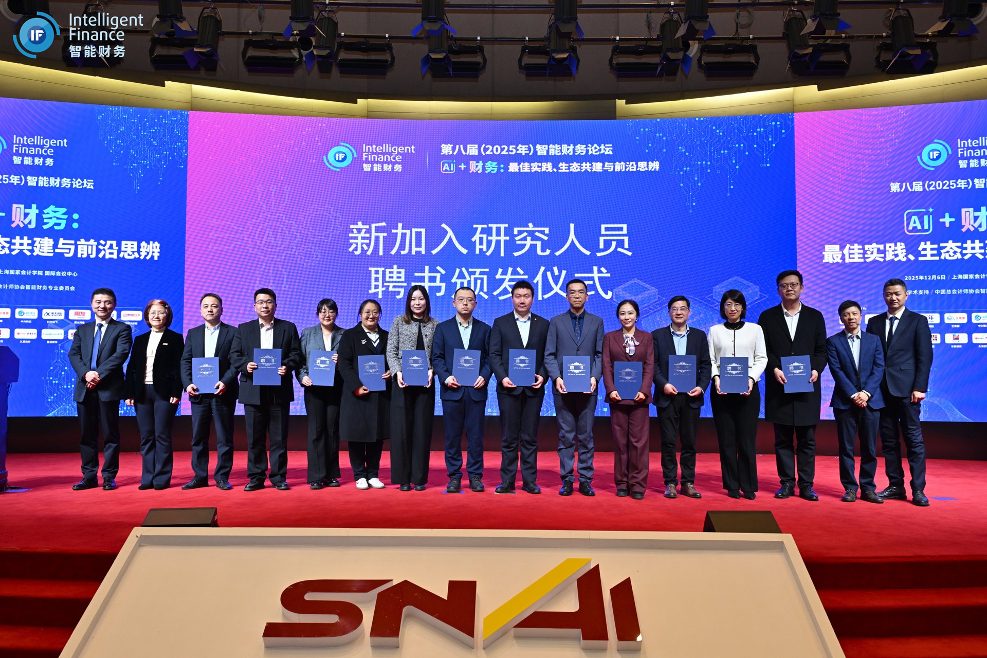 在此次会议中,上海国家会计学院为新加入智能财务研究院的研究员安排了聘书颁发环节。凭借在智能财务领域的突出贡献和专业能力,久其软件成凯运、于越和李欣分别获得相关荣誉,并于现场参与了聘书颁发仪式。