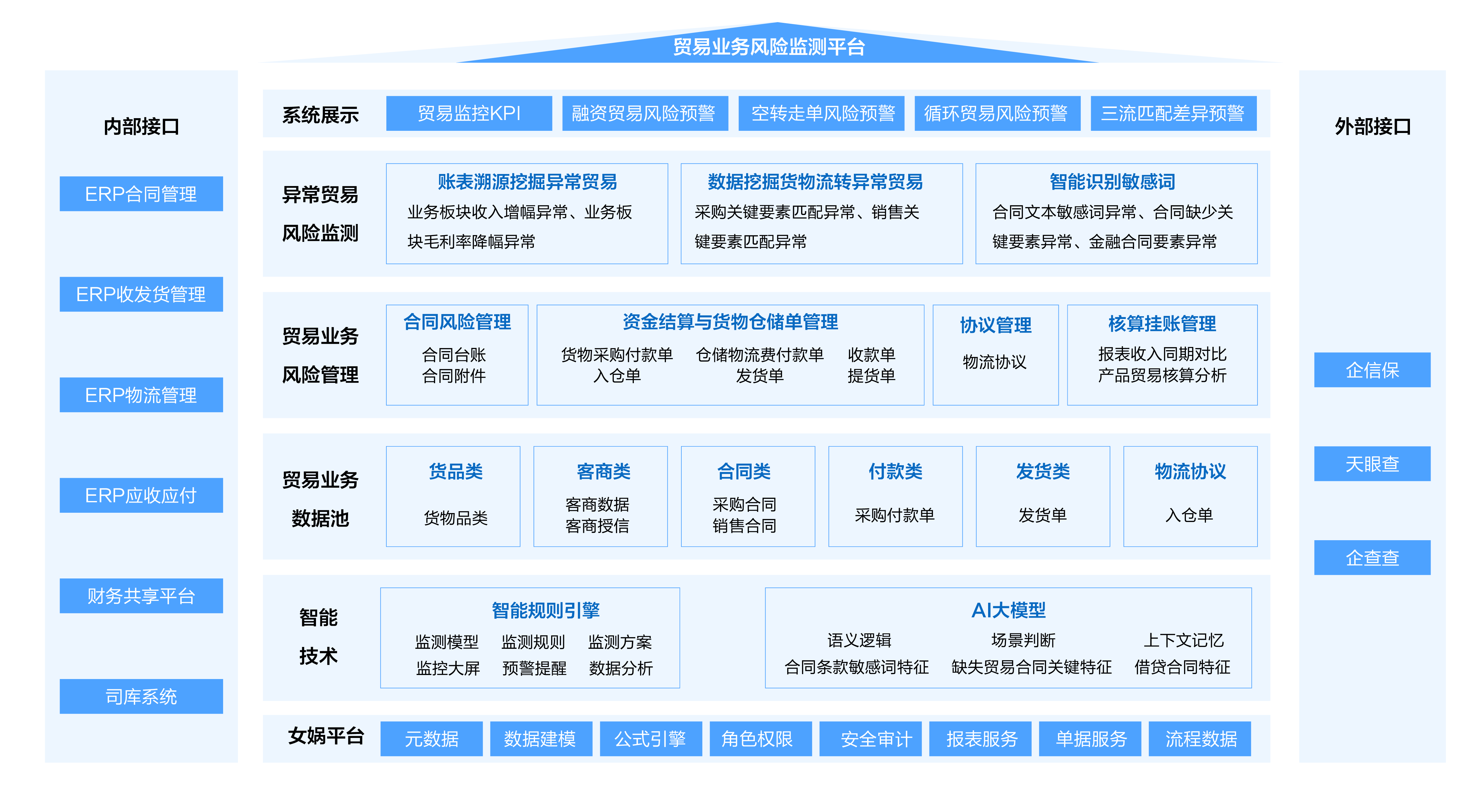 基于久其贸易业务风险监测平台开展虚假贸易风险防控与穿透监管,贸易业务风险监控平台整体框架如下: