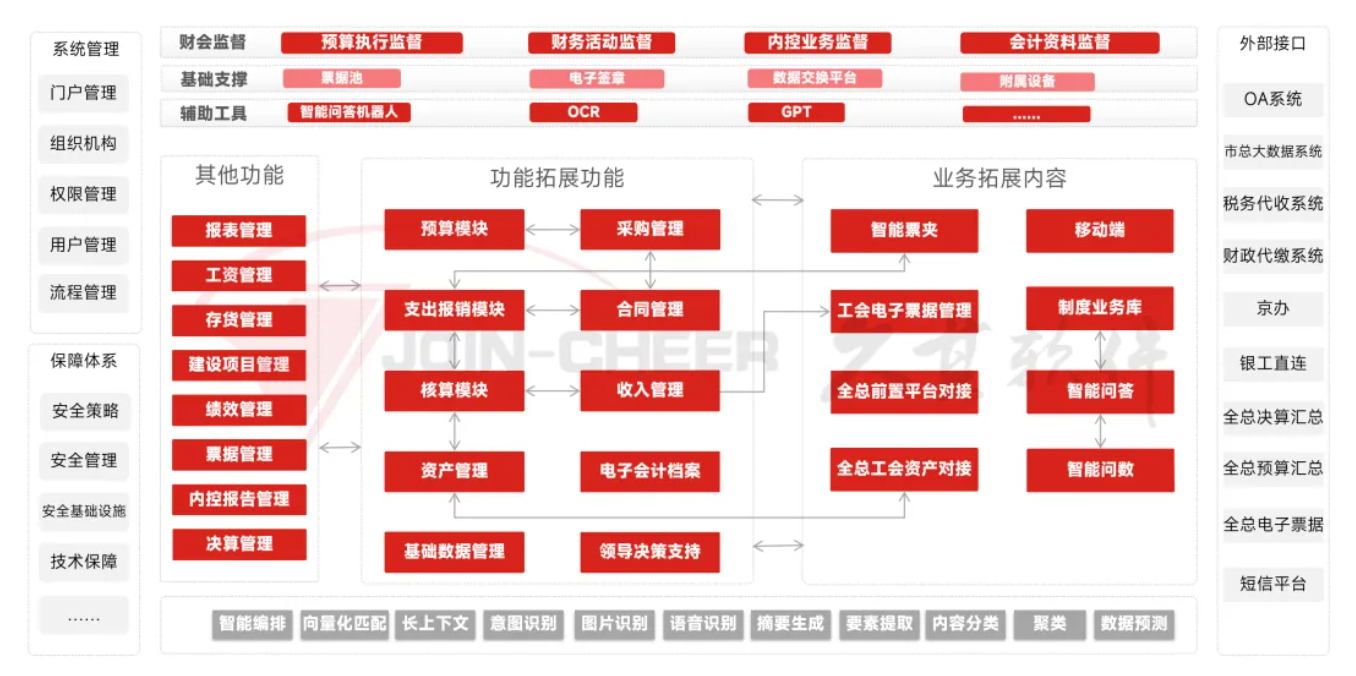 本次中标项目是久其在工会业务延伸领域的深度实践。项目聚焦于对北京市总工会现有财务内控一体化系统进行功能拓展与定制开发。在优化升级基础数据管理、预算管理等核心模块的同时,实现与全总电子票据系统、前置平台的数据对接,并搭建智能文库与问答系统,构建覆盖全层级的服务支撑体系。此举既契合全总改革及财务制度更新要求,也响应了工会业务从“流程化”向“精细化”“智能化”演进的内在需求,将有效推动工会管理从“被动合规”转向“主动赋能”。